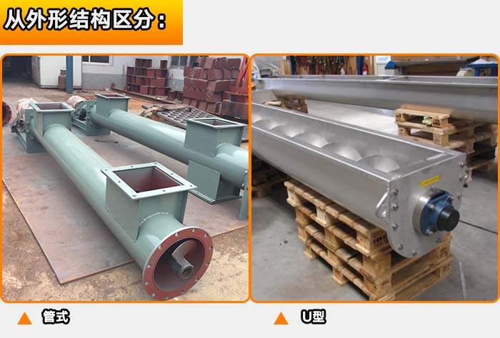 螺旋輸送機從外形結(jié)構(gòu)可分為:管式和U型的螺旋輸送機。