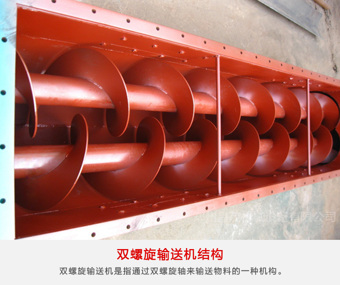 雙螺旋輸送機(jī),其是輸送機(jī)中的一種,而且,從某一方面來(lái)講的話(huà),其是指通過(guò)雙螺旋軸來(lái)輸送物料的一種機(jī)構(gòu)。因此,其的工作原理,可以認(rèn)為是,擋板提升輸送機(jī),通過(guò)旋轉(zhuǎn)的螺旋葉片,來(lái)完成物料輸送這項(xiàng)工作的。