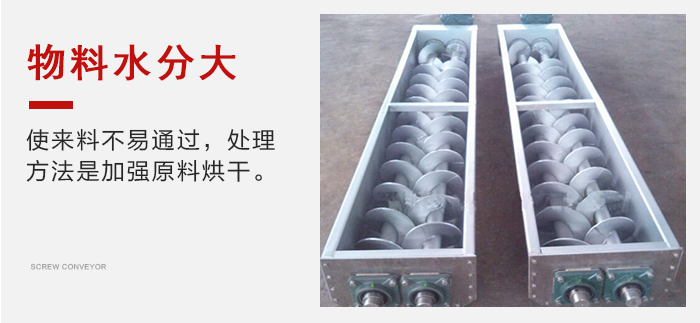 1、物料水分大,集結(jié)在螺旋吊軸承上并逐漸加厚,使來(lái)料不易通過(guò),處理方法是加強(qiáng)原料烘干。