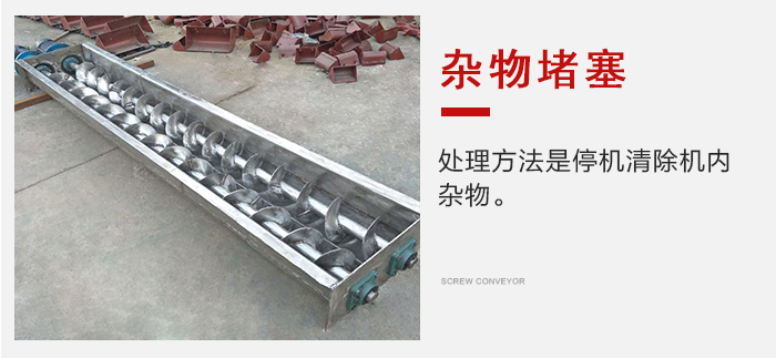 2、物料中雜物使螺旋吊軸承堵塞,處理方法是停機(jī)清除機(jī)內(nèi)雜物。