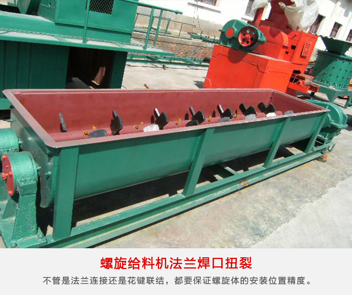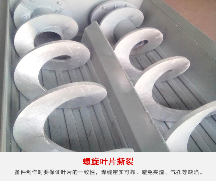 1、由于原料中異物等可造成螺旋葉片損壞,嚴(yán)重時(shí)螺旋葉片與螺旋軸焊接處脫焊,形成螺旋葉片撕裂,螺旋葉片損壞需提高備件質(zhì)量和強(qiáng)度,在備件制作時(shí)要保證葉片的一致性,焊縫密實(shí)可靠,避免夾渣、氣孔等缺陷,保證焊接質(zhì)量,同時(shí)提高螺旋軸及傳動(dòng)軸的強(qiáng)度。