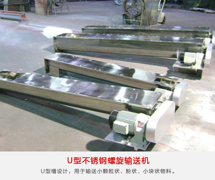 為U型槽設(shè)計(jì),用于輸送小顆粒狀、粉狀、小塊狀物料。不適宜輸送易變質(zhì)、黏性較大易結(jié)塊以及含水量較大的物料,每小時(shí)輸送量在9-134噸之間,U型不銹鋼螺旋輸送機(jī)具有密封性好、承載轉(zhuǎn)距大、噪音低、不滲油等顯著特點(diǎn)。