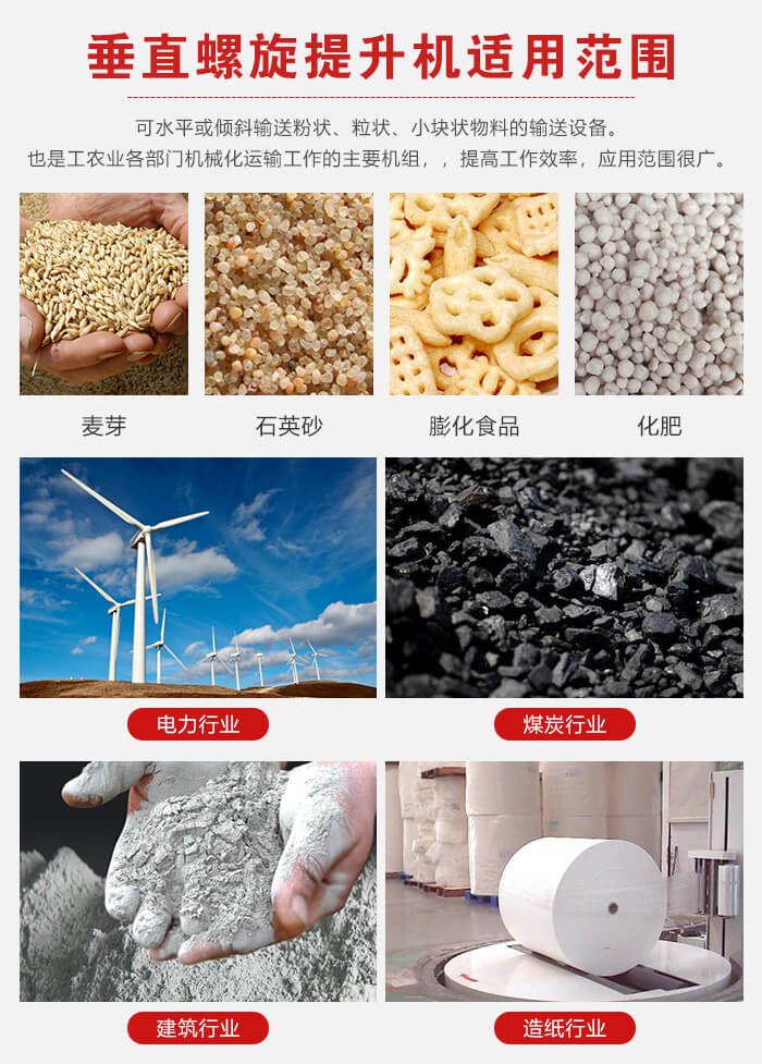 螺旋垂直提升機是用來水平或傾斜輸送粉狀、粒狀、小塊狀物料的一般用途的輸送設備, 螺旋輸送給料機是工農業各部門機械化運輸工作的主要機組,可使運輸工作減輕勞動強度,提高工作效率,應用范圍很廣。