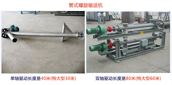 管式螺旋輸送機單軸驅(qū)動長度是40m(特大型30m),雙軸驅(qū)動長度是80m(特大型60m),長度劃分是每一檔0.5m,可根據(jù)自身需求選擇。