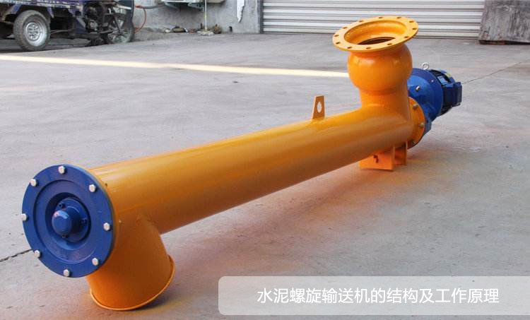 水泥螺旋輸送機由進料口,出料口,電機,減速機,螺旋葉片,螺旋管體,等組成,附帶電纜線,連接帆布套,吊掛鋼絲繩等配件。