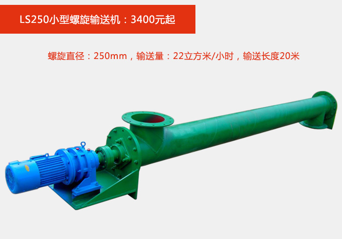 螺旋直徑:250mm,輸送量:22立方米/小時,輸送長度20米,可添加電動型出料口,方便自動控制;