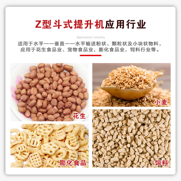 應用行業(yè):適用于水平——垂直——水平輸送粉狀、顆粒狀及小塊狀物料,廣泛應用于花生食品業(yè)、寵物食品業(yè),膨化食品業(yè),飼料行業(yè),糖果行業(yè),干鮮果品業(yè),保健食品業(yè),糧食精加工處理業(yè),化工醫(yī)藥業(yè)等。
